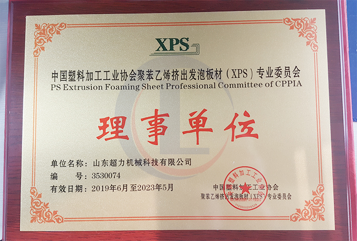 山東超力機(jī)械有限公司,憑借過硬的二氧化碳擠塑板(CO2-XPS)研發(fā)、生產(chǎn)技術(shù)與優(yōu)異的擠塑板設(shè)備質(zhì)量,被中國塑料加工工業(yè)協(xié)會(huì)聚苯乙烯擠出發(fā)泡板材(XPS)專業(yè)委員會(huì)授予協(xié)會(huì)理事單位。...